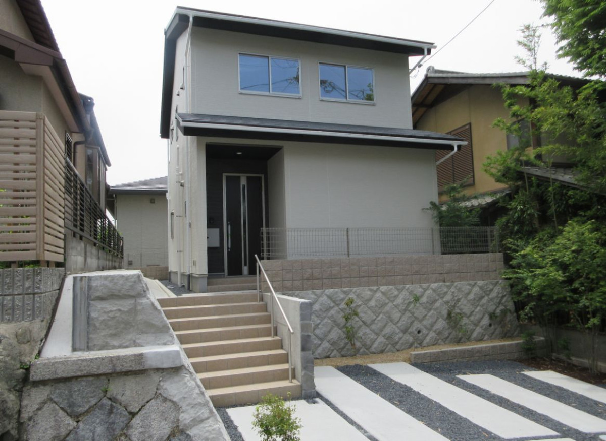 COMMENT地下鉄御陵駅から徒歩で5分、三条通りの北側、御陵封ジ山町の新築一軒家です。通称「東山台」は広い道路だけでアクセスでき、第1種低層住居専用地域や風致地区に指定されていることもあり、同規模の住宅が建ち並び一帯に渡り、区画が整っています。京都の旧市街地に近いこのロケーションにもかかわらず、落ち着いて暮らせる閑静な住宅地に2025年4月に完成したハイスペックな新築一戸建て物件。 ZEH水準の省エネ基準で建築され、断熱性能・気密性能において高い性能認定を受けています。外観は風致条例の許可を受け、下屋を配した和洋折衷のファサード。新設のRC擁壁まで間知擁壁テイストに仕上げられています。普通車2台が並列駐車できるスペースがあり、地盤面との高低差が約1mを8段の緩やか階段でアプローチします。建物間取りは4LDK。1階LDKは対面カウンターキッチンのある21.25帖のLDKは十分な広さです。内覧時、大きな掃き出し窓が南側に確認でき、南向き主採光の明るいリビングであることを実感しました。2階にはコンパクトながら4室の居室を確保。容積率80%と厳しく制限された第一種低層住居専用地域の中で、うまく設計された貴重な物件だと思います。担当者:鳥居哲也(宅地建物取引士)